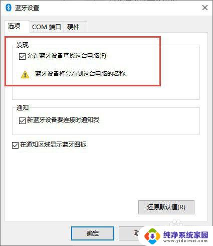 12.如果出现不能连接AirPods的现象,我们需要先进入到“更多蓝牙选项”里。勾选“允许蓝牙设备查找这台电脑”选项,然后单击确定按钮即可。