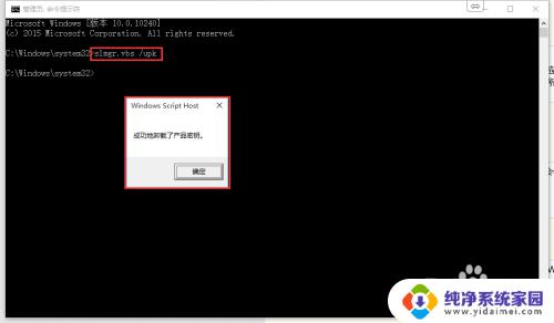 并按回车,过会会提示”已成功卸载了产品密钥“。
