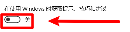5.然后点击打开【在使用windows时,获取提示、技巧和建议】功能开关。