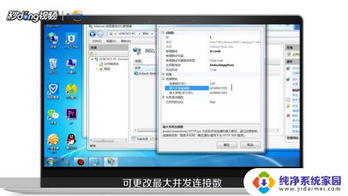 4点击“网站”,右击对应网站。选择“管理网站”——“高级设置”——“连接限制”,可更改最大并发连接数。