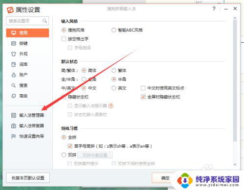11.右点搜狗状态栏——进入搜狗输入法设置属性——输入法管理器