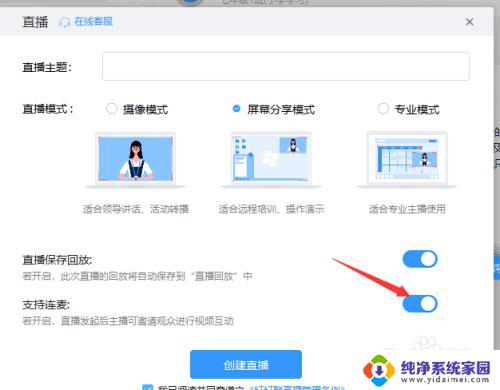 4.在设置界面的最下方,我们可以看到连麦功能选项,点击即可开启。如下图所示。